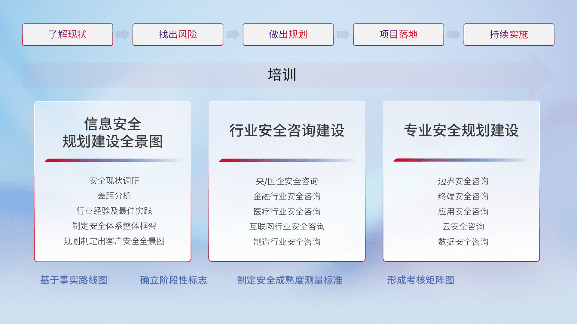 梳理客户信息安全现状调研、、、差距分析结果,,,结合行业先进经验及最佳实践,,制订客户的信息安全管控体系总结架构,,最终形成一个完整的客户信息安全规划与建设的全景图。。。