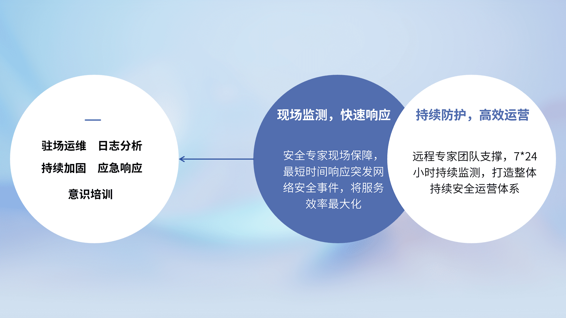 针对客户行业特性,,提供专属的一站式安全管理服务,,,,帮助客户全面感知网络空间威胁,,通过安全专家的线上、、线下防护支持,,实现风险闭环,,,,将安全保障常态化,,,为客户打造常态化安全运维运营服务。。。
